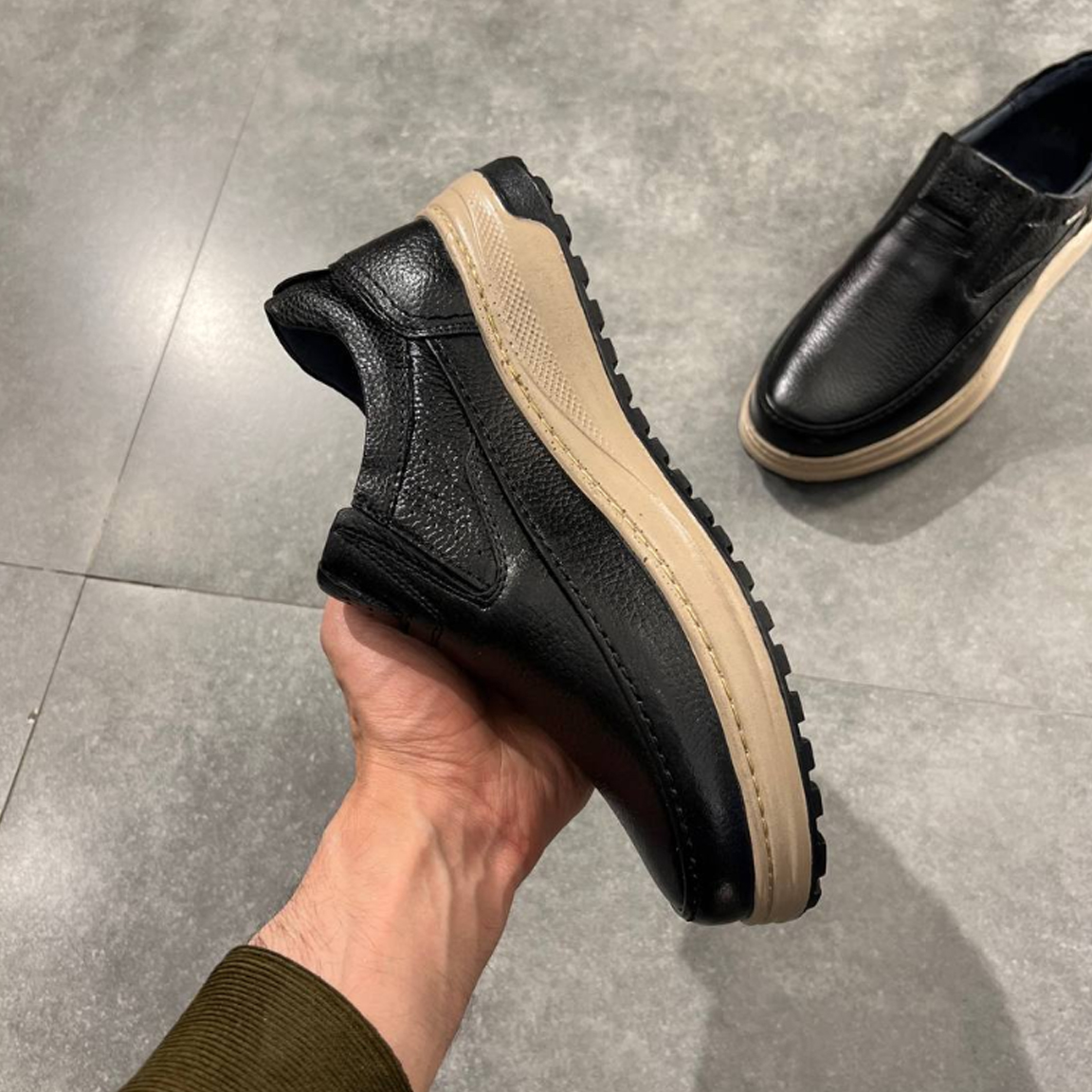 با کفش مهران، تجربه‌ای متفاوت از زیبایی و راحتی را تجربه کنید. این کفش با رویه چرم گاوی، آستر داخلی از چرم بز و کتان، و کفی داخلی نرم از چرم بز طراحی شده است. زیره پی یو دور دوخته شده این کفش، همراه با قالب کمی بزرگ، احساس راحتی و استحکام را به شما می‌دهد.